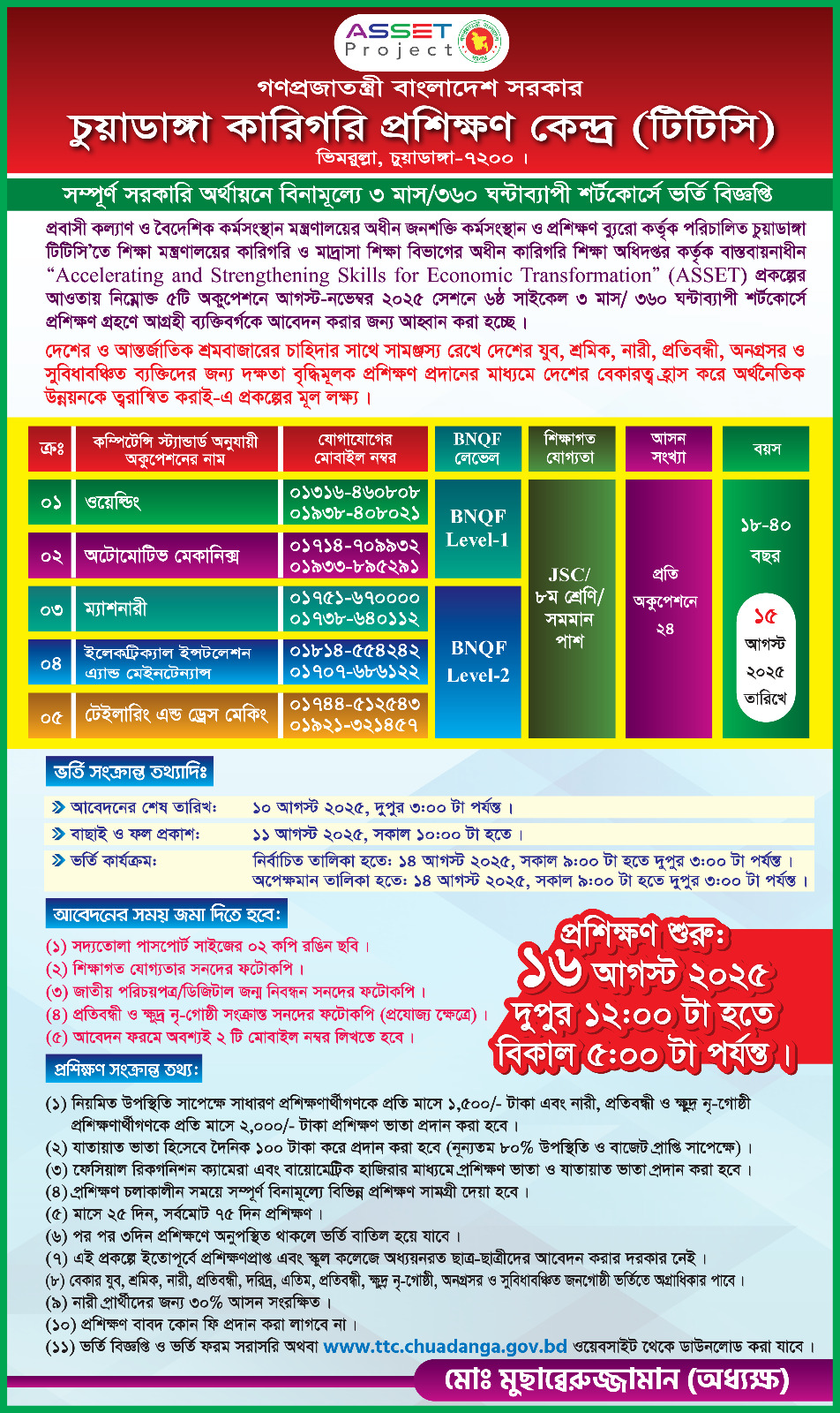 ASSET 6th Cycle Tailoring and Dress Macking level 2 Start Date 16-08-2025 End Date 13-11-2025