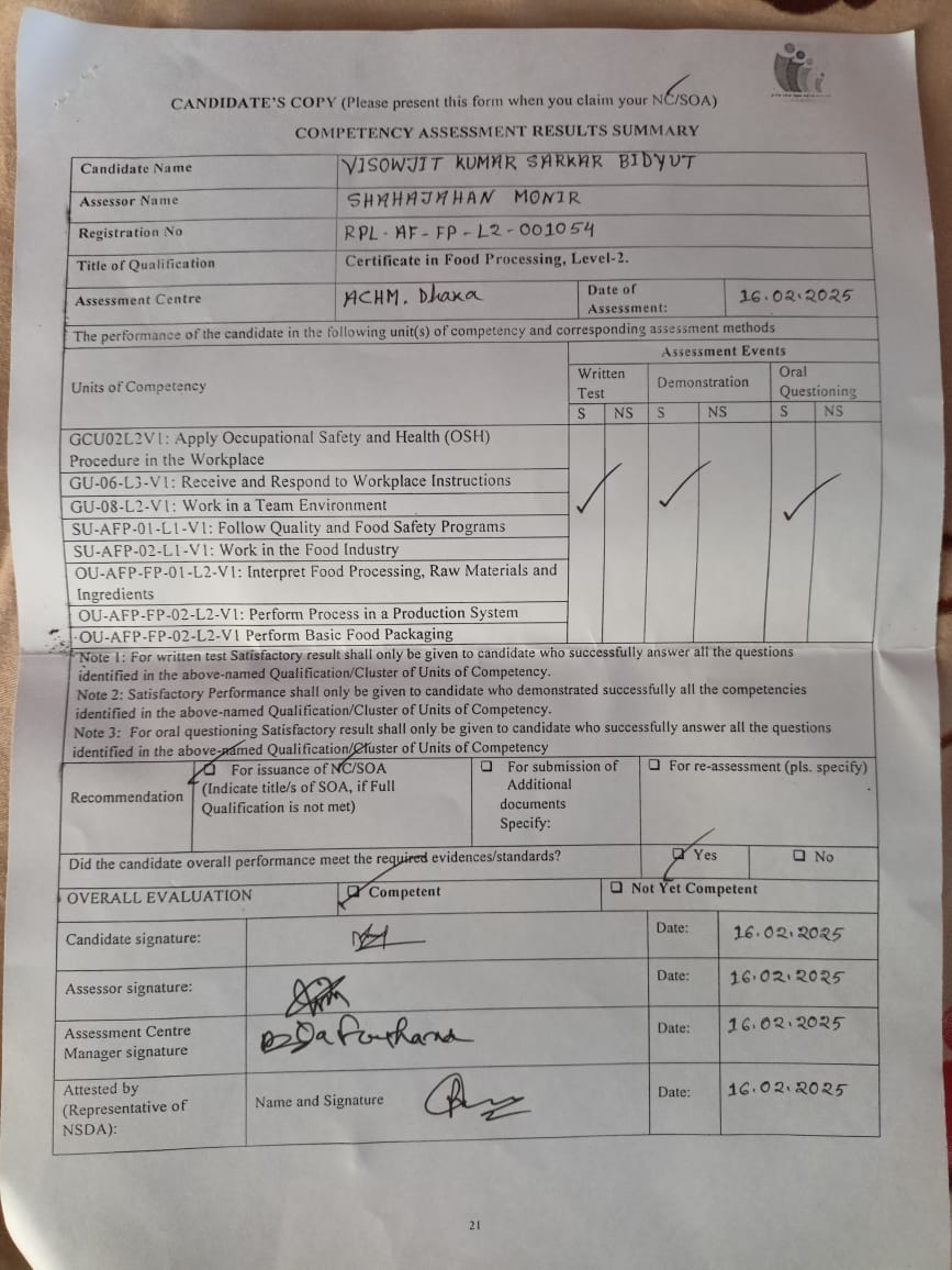 Kishwan Agro Ltd 1st batch of Food processing L-2