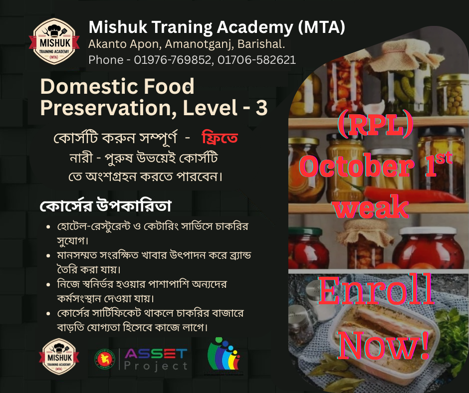 Improved employability / job opportunities With certification, you can find work in small food processing units, agro ‐processing, cottage industries, home industry, food preservation enterprises, NGOs, or government programs.