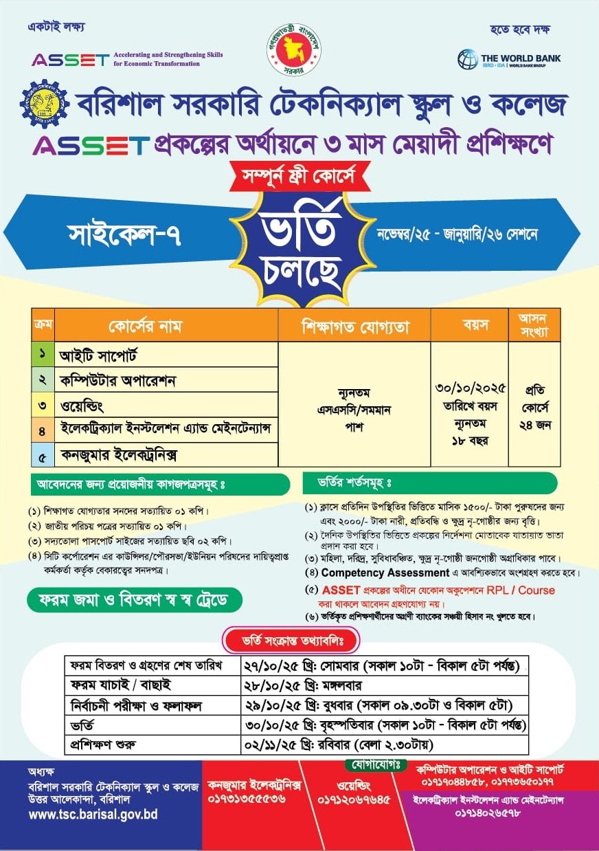 শিক্ষা মন্ত্রনালয়ের কারিগরি ও মাদ্রাসা শিক্ষা বিভাগের অধীনে কারিগরি শিক্ষা অধিদপ্তরাধীন Accelerating and Strengthening Skills for Economic Transformation (ASSET ) শীর্ষক প্রকল্পের আওতায় পূর্ব অভিজ্ঞতার স্বীকৃতি স্বরুপ RTO ও RPL সনদায়ন করা হবে