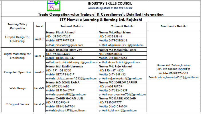 Name: Md. Rakib Uzzaman NID: 191 108 0560 Mobile: 01737346217 e-Mail: rakib.uzzaman1232@gmail.com === Name: Md. Raju Ahmed NID: 150 447 4850 Mobile: 0174249432 e-Mail: rajuahmed.stti@gmail.com ===
